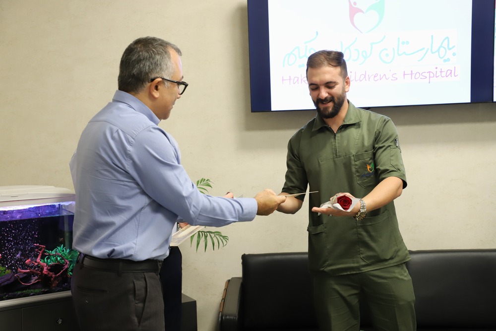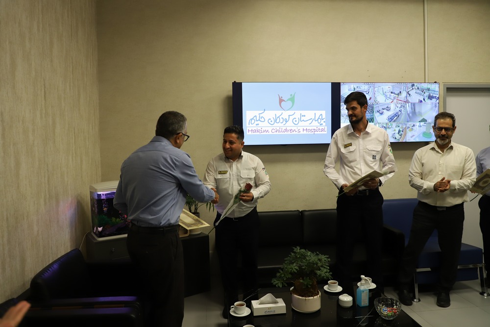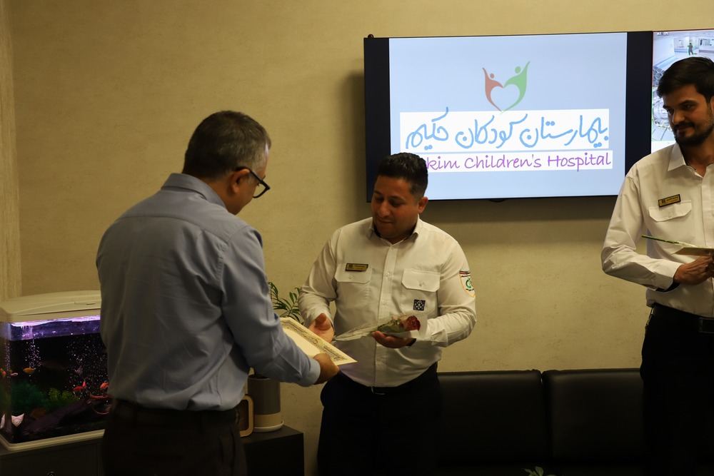 همچنین سعید مرادی، مدیر بیمارستان کودکان حکیم ضمن قدردانی از زحمات این همکاران، اظهار داشت: «موفقیت مجموعه بیمارستان در گرو تلاش صادقانه تمامی کارکنان در تمام ساعات شبانه روز است ومستلزم کار تیمی واحدها از جمله واحدهای پشتیبانی می باشد. در دورههای آتی نیز ارزیابی سایر واحدها ادامه خواهد داشت تا از خدمات شایسته تمامی کارکنان تقدیر به عمل آید.»