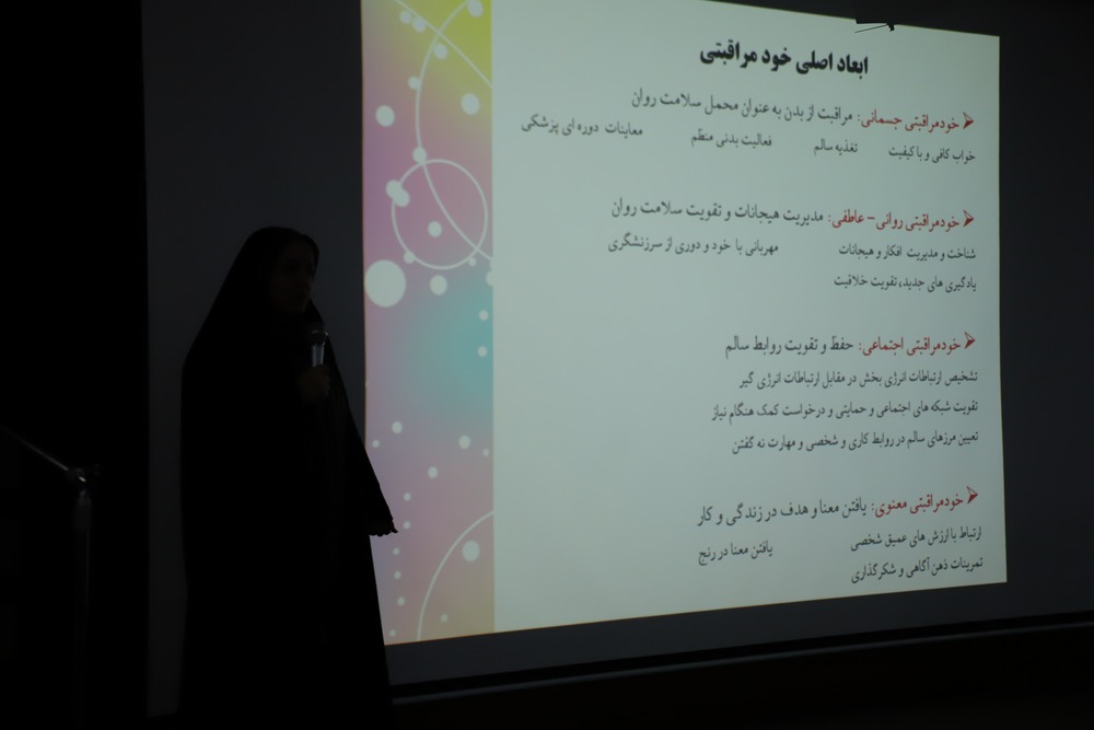 در این برنامه که با هدف ارتقای سلامت روان و افزایش تابآوری فردی و اجتماعی بانوان شاغل برگزار شد، دکتر طاهره متولیزاده بهعنوان مدرس، به تبیین مفاهیم خودمراقبتی روانی، ضرورت شناخت مرزهای شخصی سالم در محیط کار و زندگی، و راهکارهای حفظ تعادل میان نقشهای شغلی و خانوادگی پرداخت.